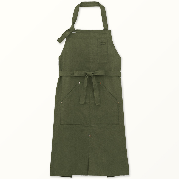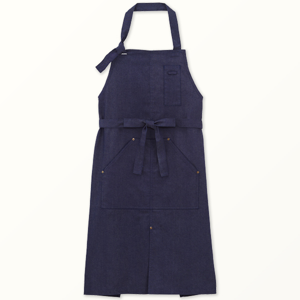 - 軽めのデニム調生地の胸当てエプロン